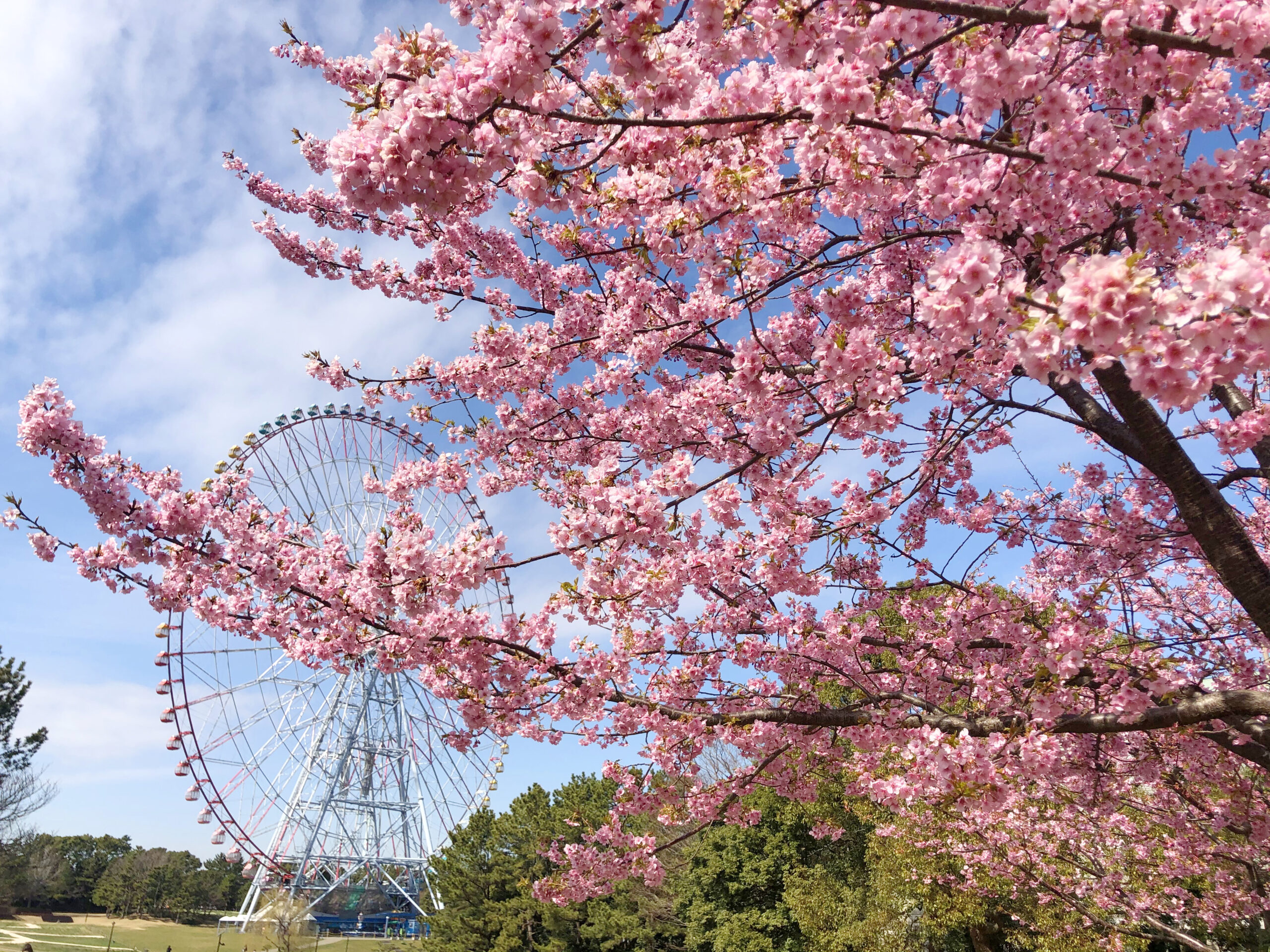 いち早く春気分を味わいたい方は、「ダイヤと花の大観覧車」のすぐ側に咲いている、「河津桜」がおすすめです。